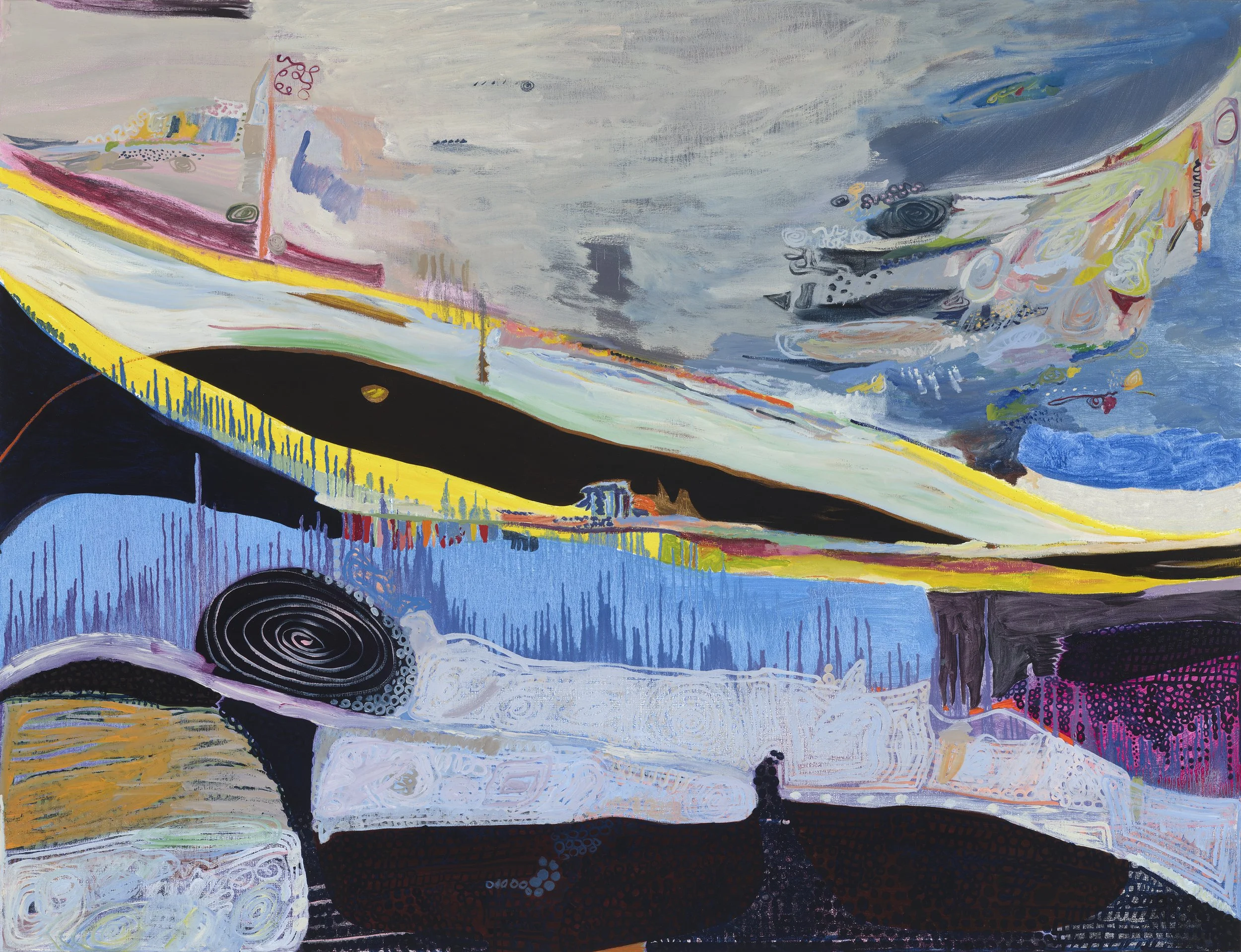 Cicely Carew, Bridging, acrylic on yupo, 44” x 62”, 2024-2025, photography by Julia Featheringill.