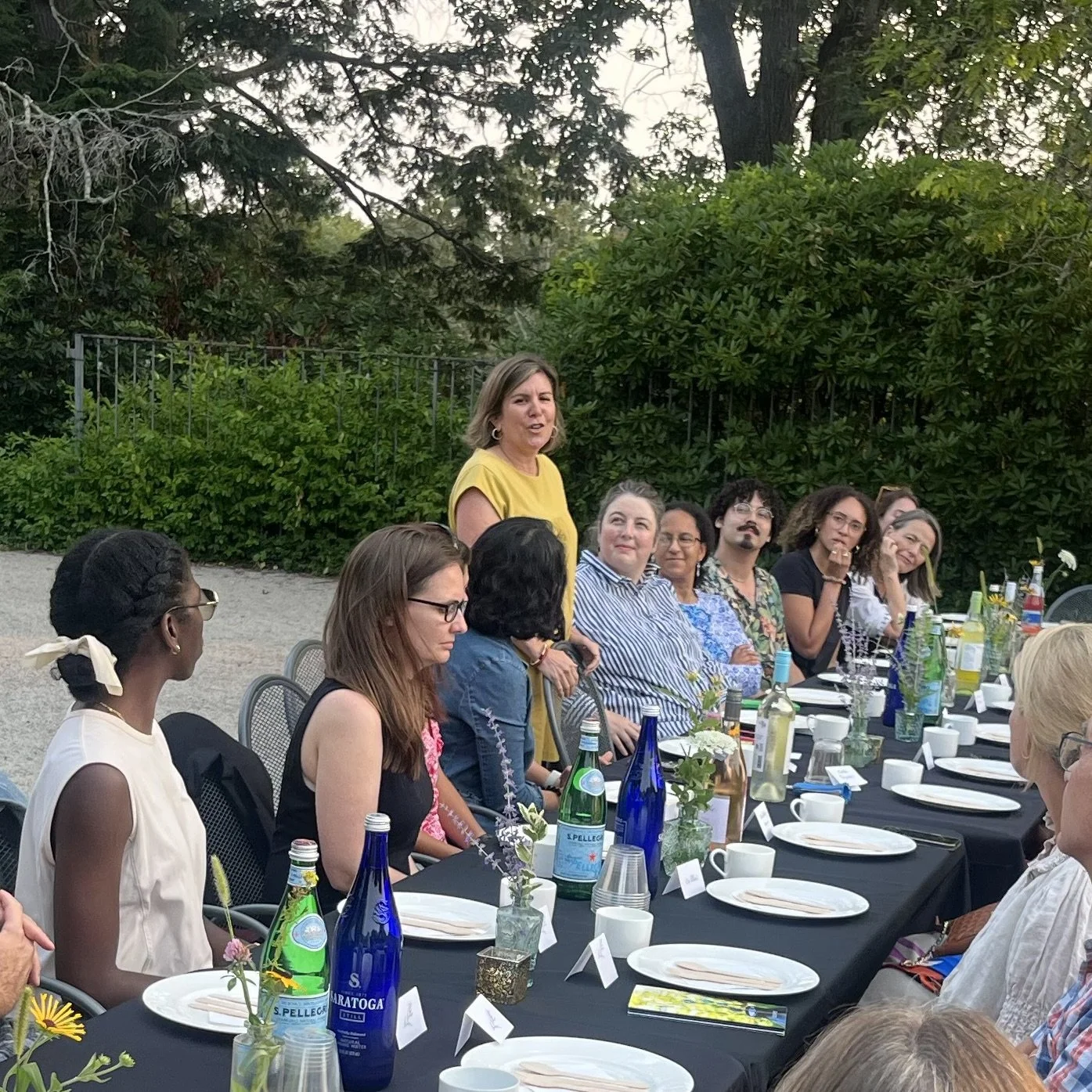 Evelyn Rydz welcomes the group and shares her story. Photo by Sarah Montross, Museum Director and Chief Curator deCordova Sculpture Park and Museum.