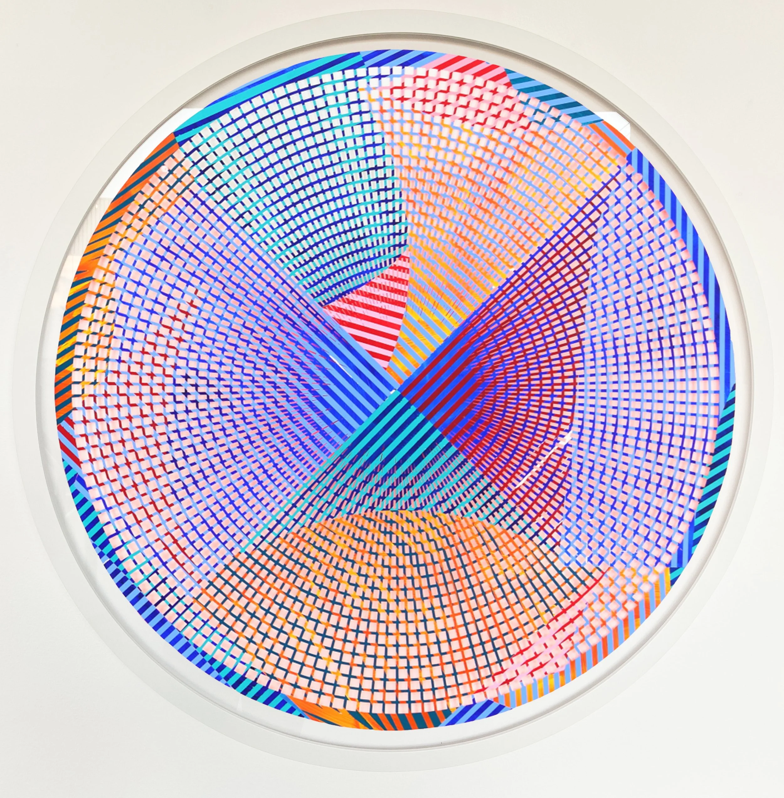Take the intricate round pieces by Leigh Suggs. Through painting, handcutting and layering, she reimagines the modernist grid as a site of tension and illusion. The pieces seem to hold themselves together like weavings, oscillating between strength, structure and fragility.