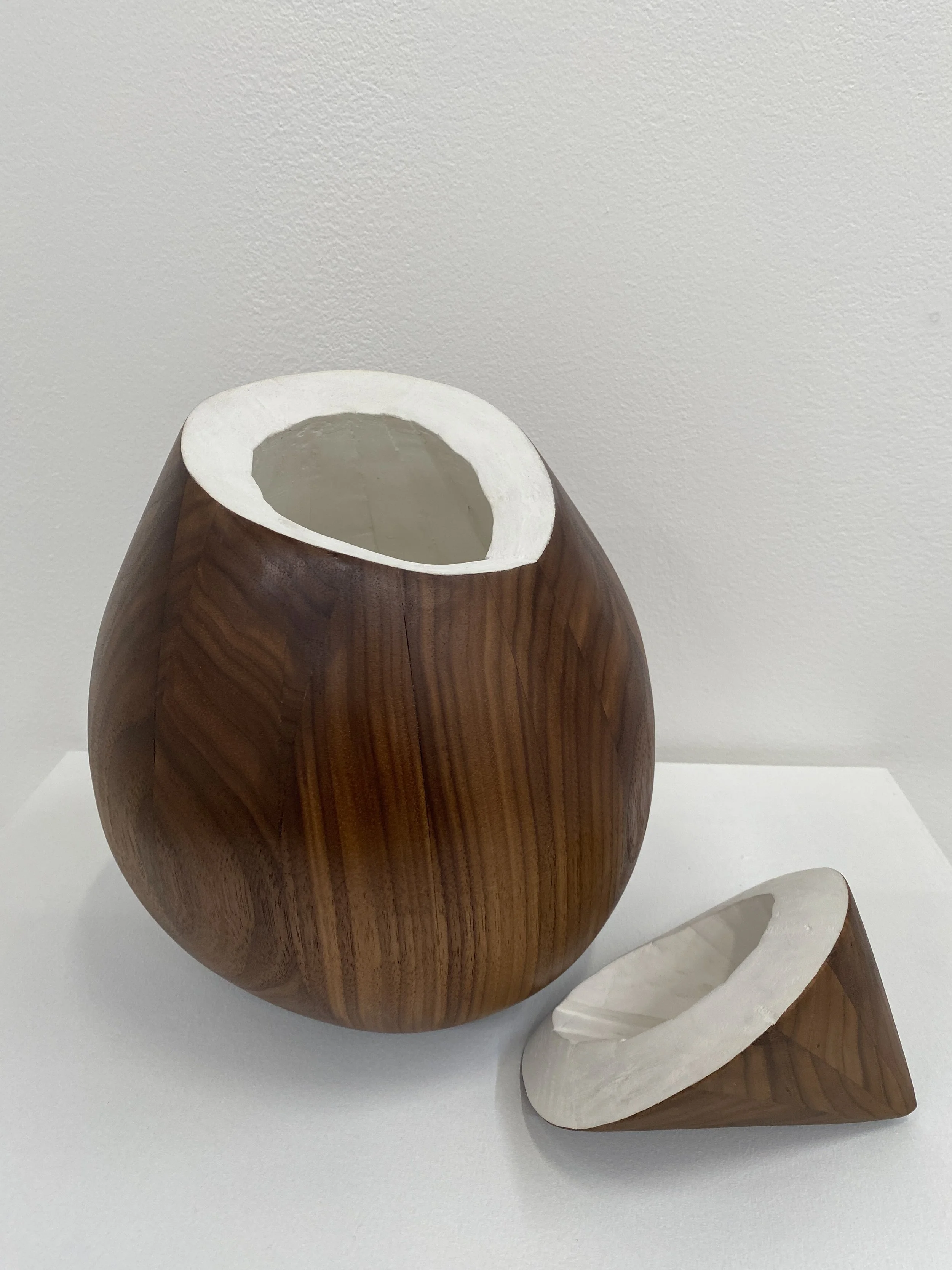 Alison Croney Moses, Walnut Pod 4, 2024. Walnut and milk paint. 14 x 9 x 9 in.