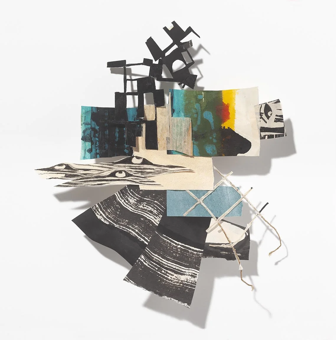 Heidi Whitman, Queequeg, 2025. Ink, gouache, acrylic, paper, string and cast shadows. Photo: Will Howcroft.