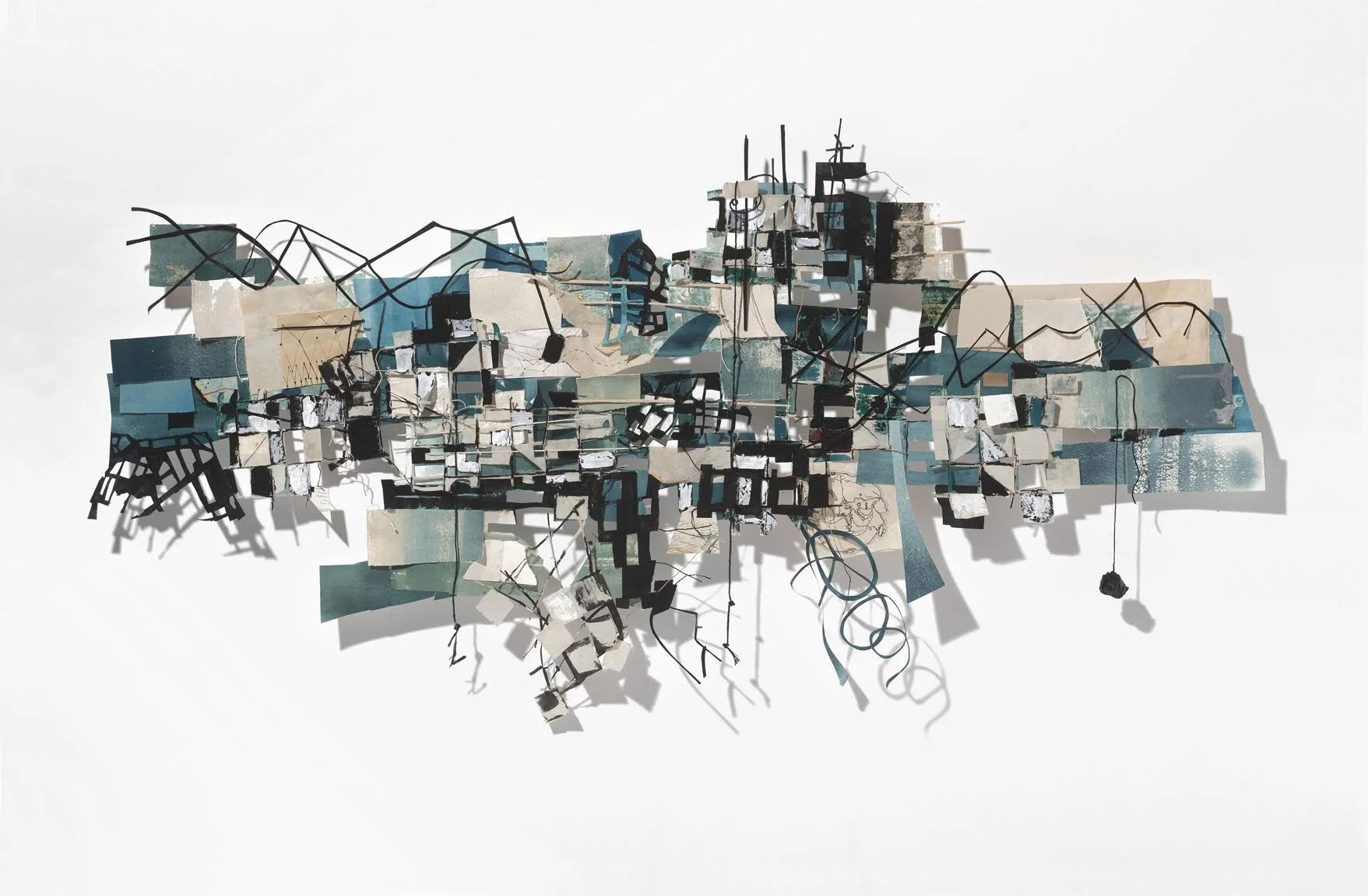 Heidi Whitman, A Very Long Journey, 2023. Ink, gouache, acrylic, paper, string and cast shadows. Photo: Will Howcroft.