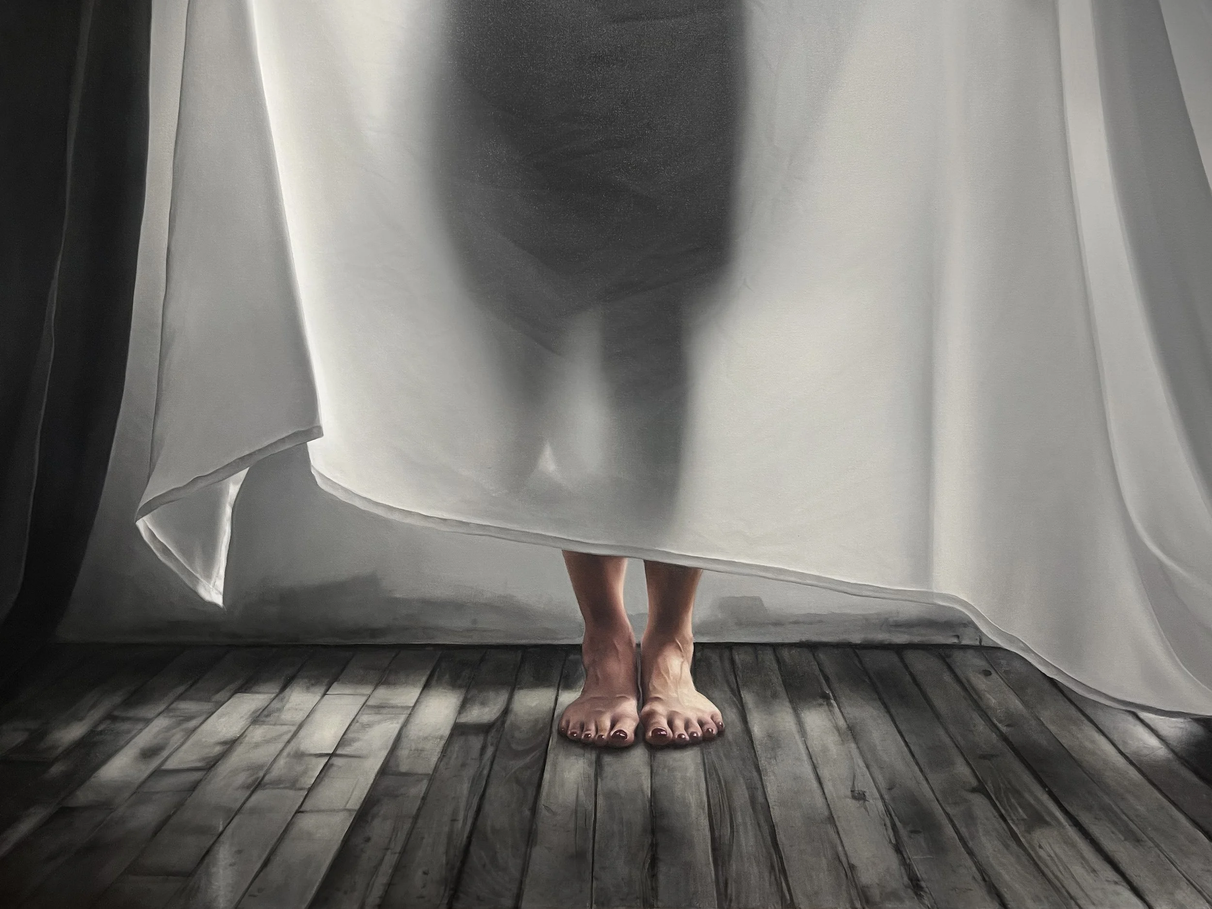 The Safarani Sisters, Hidden Tale II, 2024. Oil on Canvas and Video Projection, 36 x 48-inch. Image courtesy of the artists.