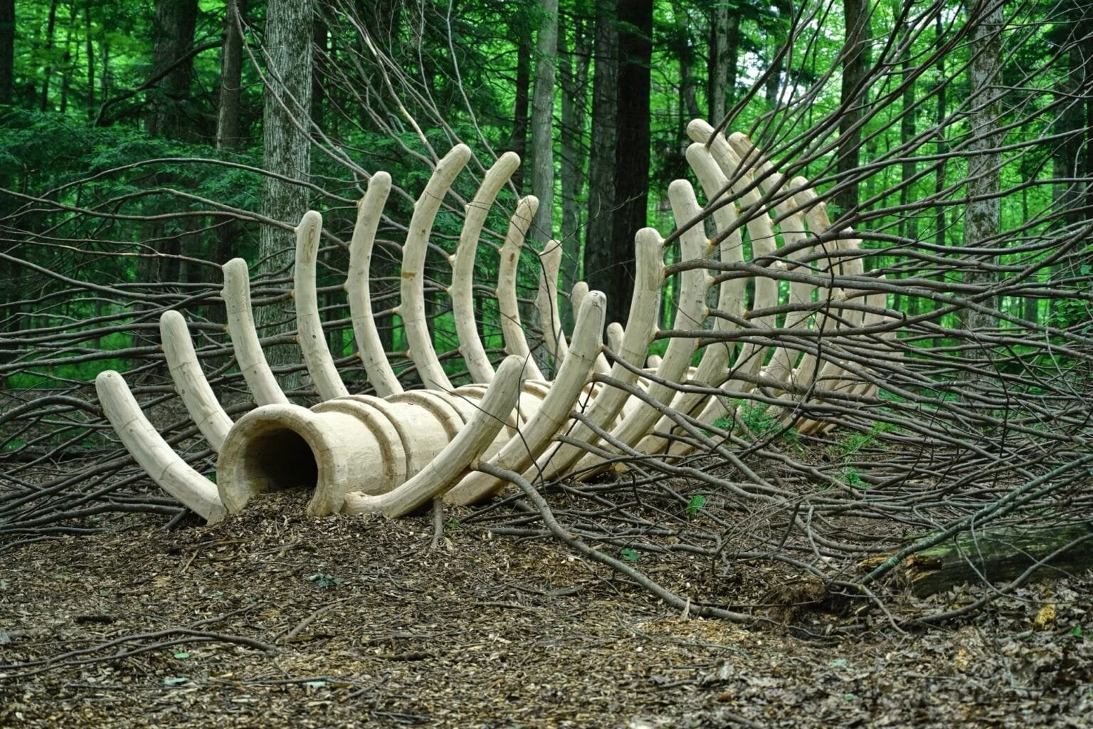 “Ground/work 2025 is an outdoor exhibition of six monumental sculptures positioned across the Clark’s campus. Each participating artist reimagines a global craft tradition in contemporary form: Mexican tile mosaic (Javier Senosiain), West African indigo dyeing (Aboubakar Fofana), British willow weaving (Laura Ellen Bacon), American woodworking (Hugh Hayden), Japanese ceramics (Yō Akiyama), and European marble carving (Milena Naef). Craft is a crucial variable in the equation of art; it takes many forms across the world, not only in terms of materials and processes, but also in terms of cultural and spiritual associations. No matter where or how craft is practiced, though, it always comes down to skilled human hands—what they bring to our shared environment.” (The Clark Institute).