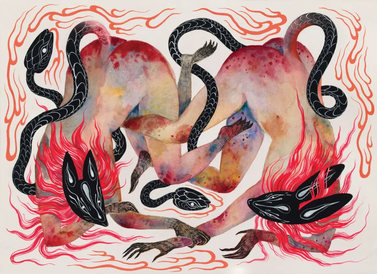 Makoto Chi, “Sweet Surrender” (2024), watercolor and gouache on paper.