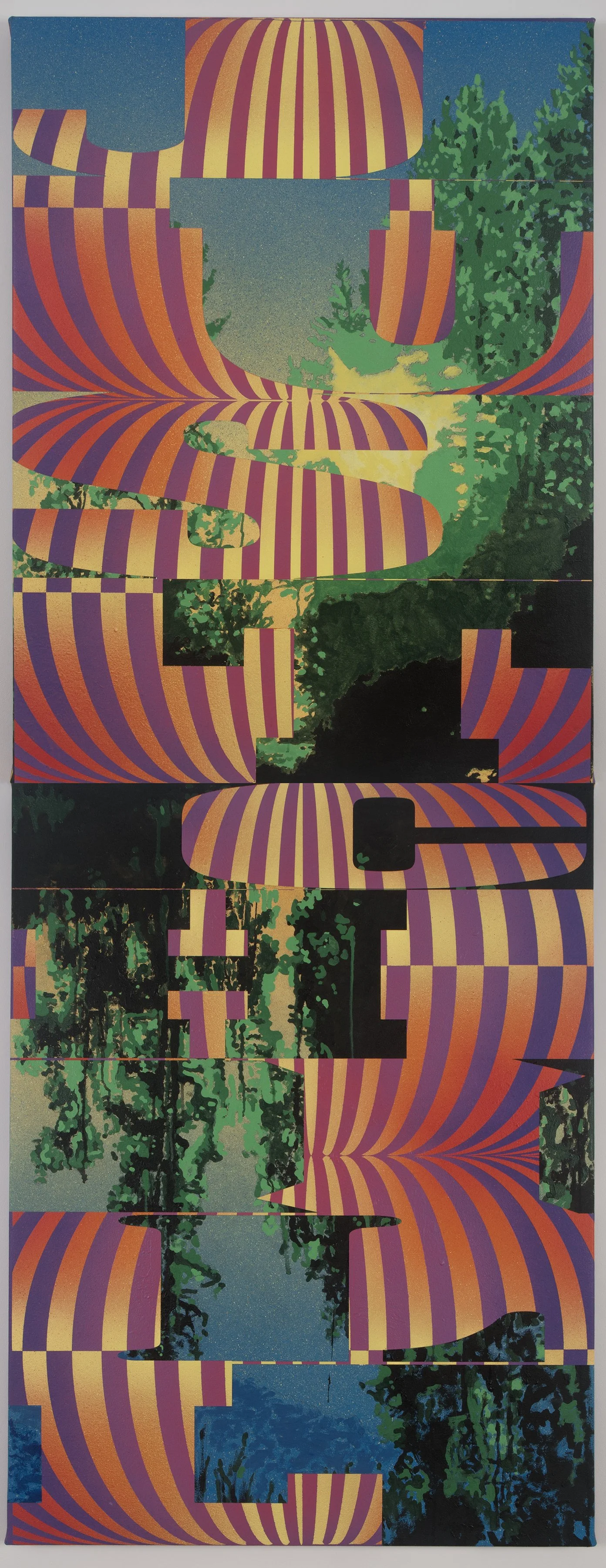 ‘The words that Snoop Dogg repeats in Nuthing but a G Thang, could be interpreted as a flippant dismissal of the chaos of a world spiraling beyond our control, or a plea for the chaotic world to slow down and allow us to relax even just for a moment. This ambiguity of intent is precisely what I want us to contemplate. As we follow the painter’s lead, the paintings get louder to compete with the deafening and deadening cynicism, violence, and absurdity that is political discourse today. In these paintings, life and art combine to hold the dissonance of the world, but also the quiet moments that consider the elegance of a line, a combination of colors, or the sorrow and joy of living with uncertainty.’’ (Joe Wardwell and LaMontagne Gallery)
